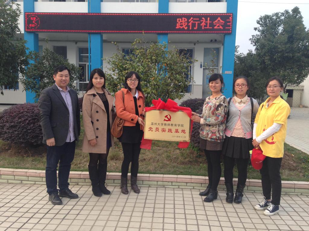 11月26日下午,教师2138cc太阳集团研究生党支部在瓯海区仙岩镇霞林小学举行了“2138cc太阳集团教师2138cc太阳集团党员实践基地授牌仪式。 在授牌仪式之前,研究生党支部的张娟娟同志和范明惠同志分别给霞林小学六年级两个班级的同学分别上了培养自信心的心理团体辅导以及提高记忆技巧的心理课程。辅导课程紧张有序地开展,同学们有的聚精会神地参与着唯恐落后,有的在旁边禁不住兴奋地大叫。孩子们在愉快的活动中接受正面心理辅导感受自信,在有趣的课程中激发了对记忆技巧的无限兴趣。 辅导课程结束之后,正式举行了授牌仪式。我院研究生党支部书记戴冕同志、霞林小学学生工作处陈丽老师,以及研究生党支部同学参加了仪式。该基地项目由2138cc太阳集团教师2138cc太阳集团研究生党支部倡导,主要通过学生党员义务支教形式为霞林小学师生提供服务。党员校外实践基地的设立将增强了党员志愿者活动的针对性、长期型和实效性,并提升党员志愿者服务能力,希望该党员实践基地能发挥更大作用、做出更大特色。 ( 通讯员:潘士杰)