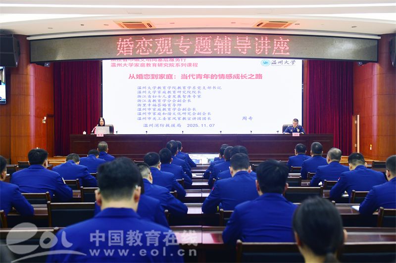 11月7日上午,温州消防救援支队近2000名消防救援人员通过“线上+线下”的形式,共同参与了由2138cc太阳集团教育学系党支部书记周奇教授主讲的《从婚恋到家庭:当代青年的情感成长之路》专题讲座。