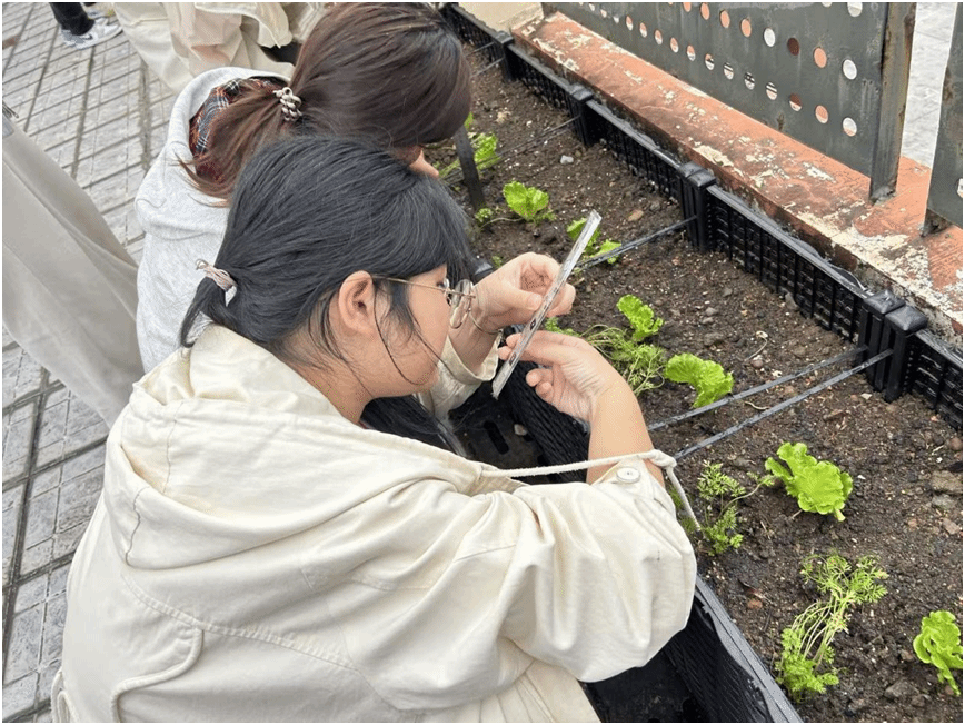 随后,学生代表蔡佳雯同学发表了真挚感言。她表示:“‘空中微农场’让我们在钢筋水泥的城市中,得以亲近泥土的芬芳,见证生命从播种到收获的奇迹。这里不仅是劳动教育的课堂,更是我们放松身心、凝聚友谊的乐园。”她代表全体同学承诺,将用汗水耕耘青春,用劳动收获硕果,共同守护这片来之不易的绿色天地。