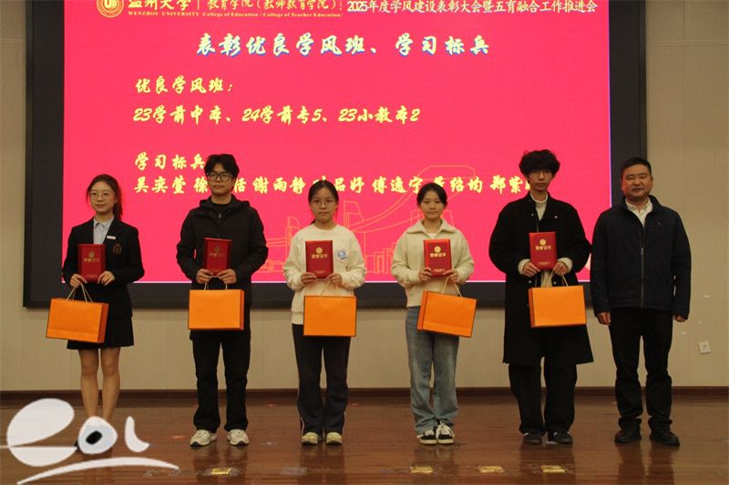 校级“优良学风班”23学前中本一体化班级为大会带来压轴展示。全班同学通过照片与视频深情回顾六年成长历程:在专业学习上,组建互助小组攻克学术难题,发表多篇联合署名论文艺术实践中,原创节目登上校内外舞台,用童趣视角传递教育温度;科研创新中,“乡村学前教育帮扶”项目获省级立项,将所学知识转化为服务社会的实际行动,全方位展现了五育融合的丰硕成果。