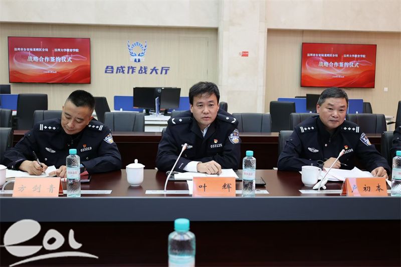 龙湾区副区长、龙湾区分局党委书记、局长叶辉在讲话中阐述了此次合作对提升公安队伍专业化水平、锻造新质战斗力的重要意义,指明了双方合作的方向与路径。他表示,通过“警校携手、共筑心盾”,必将在民警心理服务、教官培养、人才共建等方面结出丰硕成果,为推动更高水平“平安龙湾”建设、提升公安新质战斗力注入持久动能。