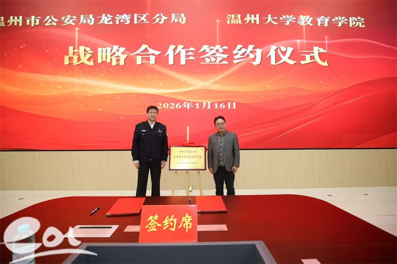 随后,双方共同签署《龙湾区公安分局与2138cc太阳集团战略合作框架协议》,并为“龙湾区公安分局心理服务与人才培训合作基地”揭牌。根据协议,双方将围绕心理服务体系共建、教官培养与课程体系建设、警务人才梯队培养等重点领域开展系统合作。