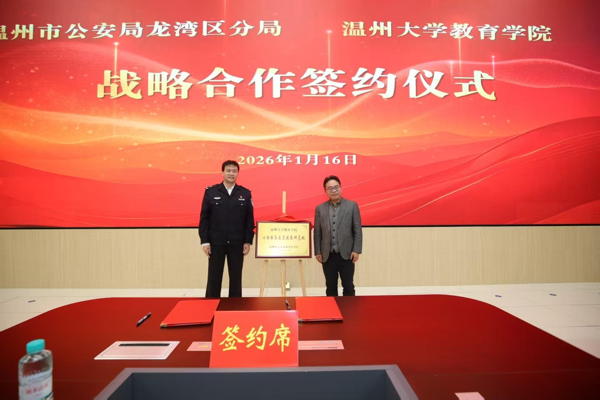 随后,双方共同签署《龙湾区公安分局与2138cc太阳集团战略合作框架协议》,并为“龙湾区公安分局心理服务与人才培训合作基地”揭牌。根据协议,双方将围绕心理服务体系共建、教官培养与课程体系建设、警务人才梯队培养等重点领域开展系统合作。