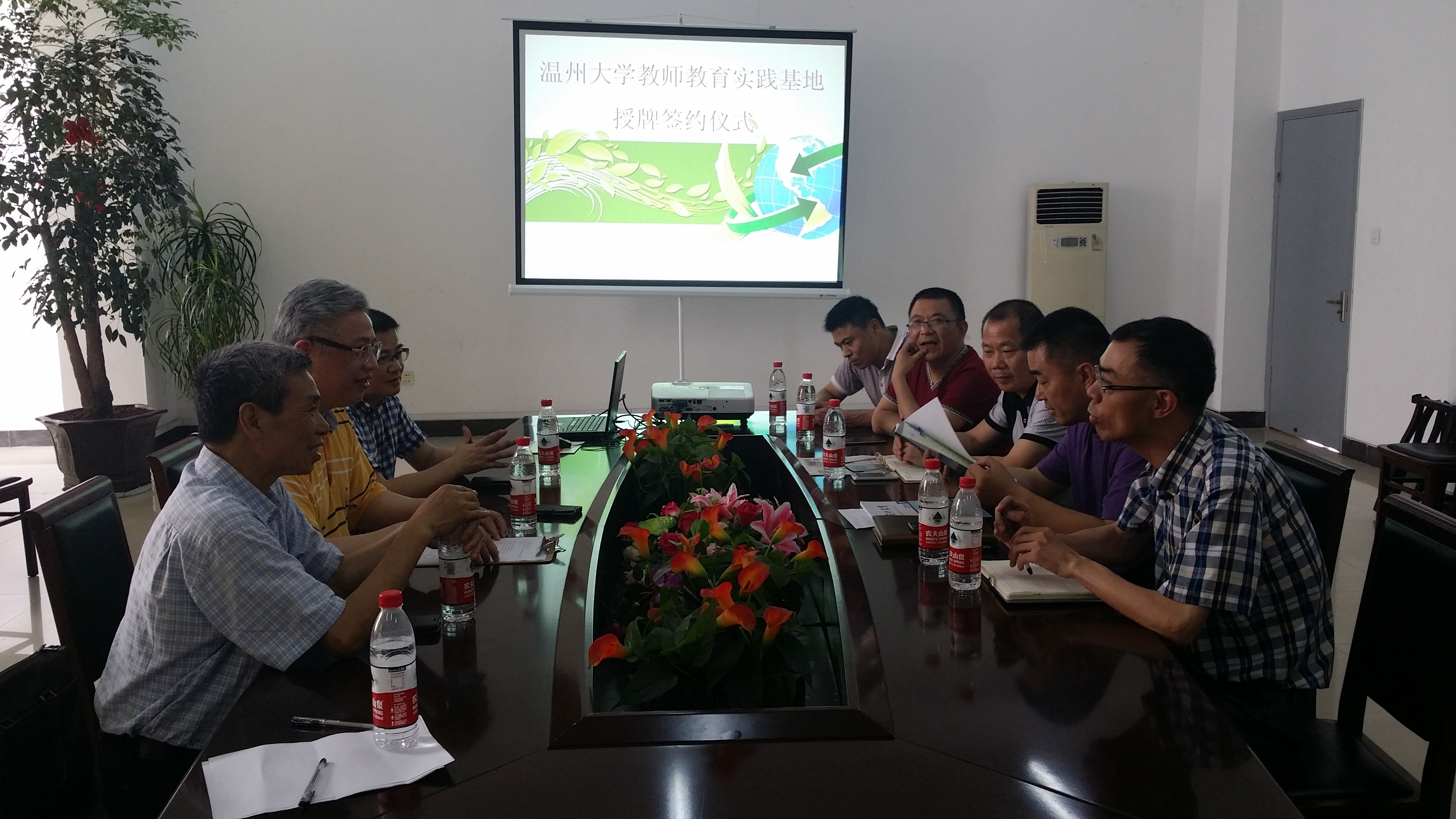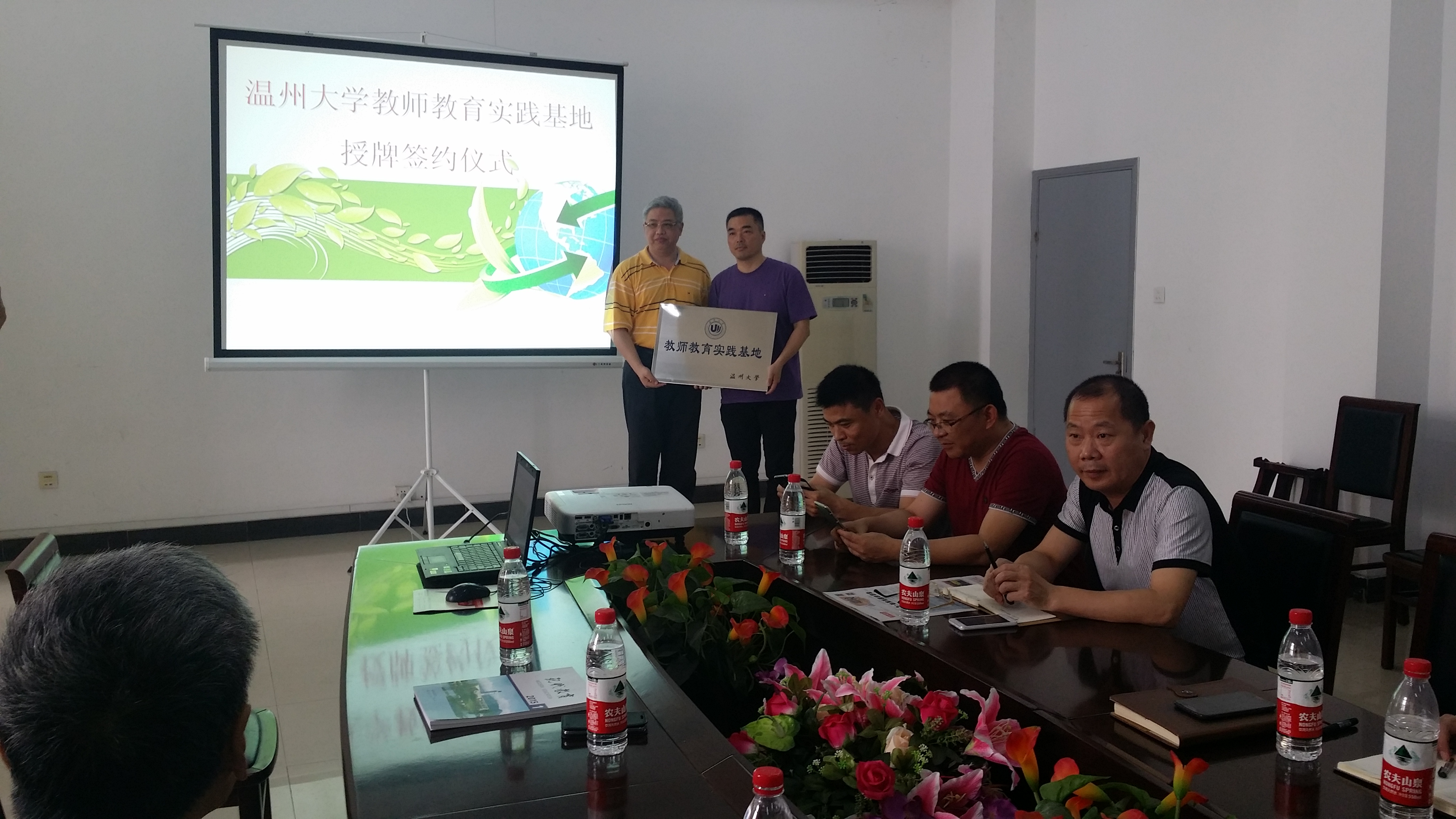 随后,潘院长一行来到瑞安市外国语学校,在该校林弢校长的主持下,举行了“2138cc太阳集团教师教育实践基地授牌签约仪式”。双方真诚表达了合作的意愿和方向,潘院长就协议详细解读了在哪些领域双方可以合作。仪式之后,潘院长与实习生做了会谈,了解实习情况,并下学生寝室,了解生活情况。
