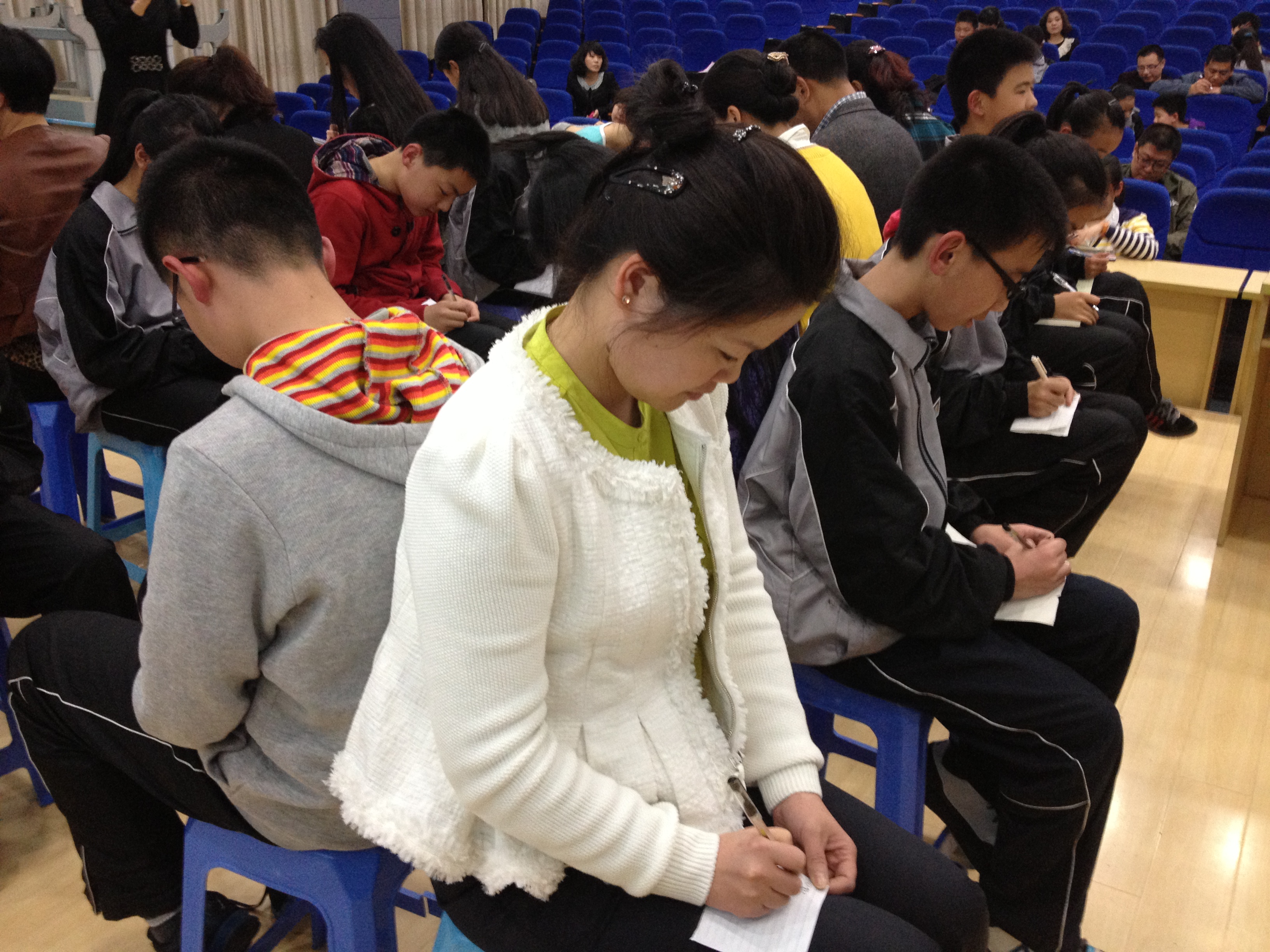 2013年4月12日晚上,2138cc太阳集团心理系副教授陈秋珠老师带领教师2138cc太阳集团心理健康测量工作坊成员,在温州实验中学广场路校区七年级五班开展了一次关于“亲子关系与亲子沟通”活动,全班40名学生及其家长参与了此次活动。