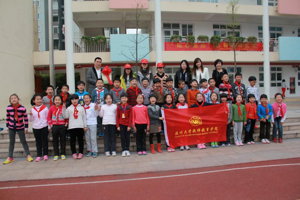 4月9日下午,教师2138cc太阳集团“知心姐姐”青年志愿者队伍来到温州市鹿城第二实验小学,为该校的小学生朋友带来“知心姐姐”信箱,并举行信箱启动仪式。学院党总支副书记嵇小怡、鹿城第二实验小学金志明校长出席“知心姐姐”信箱启动仪式。启动仪式由鹿城第二实验小学副校长李小静老师主持。