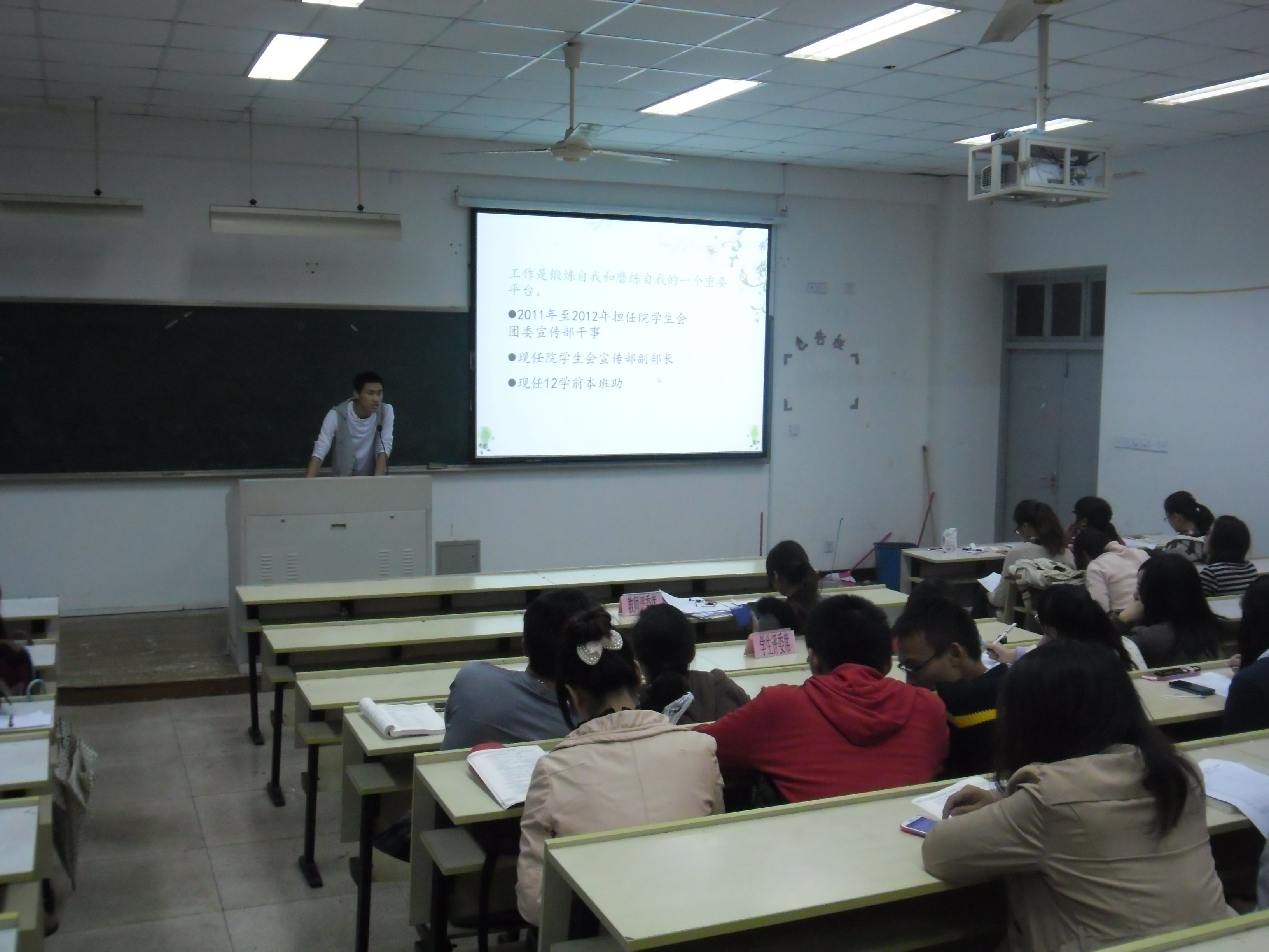 2012年11月9日晚,教师2138cc太阳集团在教育楼401、402教室举行了2011/2012学年“学习标兵”的评选活动。有二十四名来自不同专业、年级的优秀学子们参与此次评选。本次评比活动由学生科胡仲仲老师和来自各班的学生代表担任评委。
