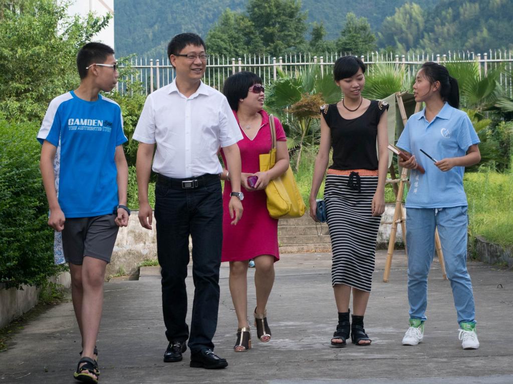 下午4时许,在队长虞静婕和队员们的陪同下,蔡联群书记一行率先参观了队员们生活的宿舍楼、食堂和教学楼,亲切地询问了大家平时的起居和用餐情况。队长虞静婕详细地介绍了队员们的上课情况,并重点讲述了夏令营即将开展的“墨香温州书法比赛”。蔡联群书记建议让部分书法成果留给孩子们作纪念。与往年不同的是,此次夏令营结束时队员们将会把孩子们日常的学习、生活、比赛情况编成纪念册,赠送给孩子们。这一想法获得了老师们的一致肯定。在过去的一周中,实践队遇到了一个意外情况——停电13小时。在这十几个小时里,最让大家印象深刻的是在书法课上。敞开的窗使得大风贯入,书写的纸张随风扬起,孩子们为了练字,主动要求关窗,纷纷说“风大不好练字”“老师,没事儿,我们不怕热”。院领导听说此事,也被孩子们学习的热情打动。随后,老师们又参观了图书室、琴房、办公室等地方,深入了解了实践队的日常教学情况,也对实践队的教学活动提出了切实受用的建议和鼓励。