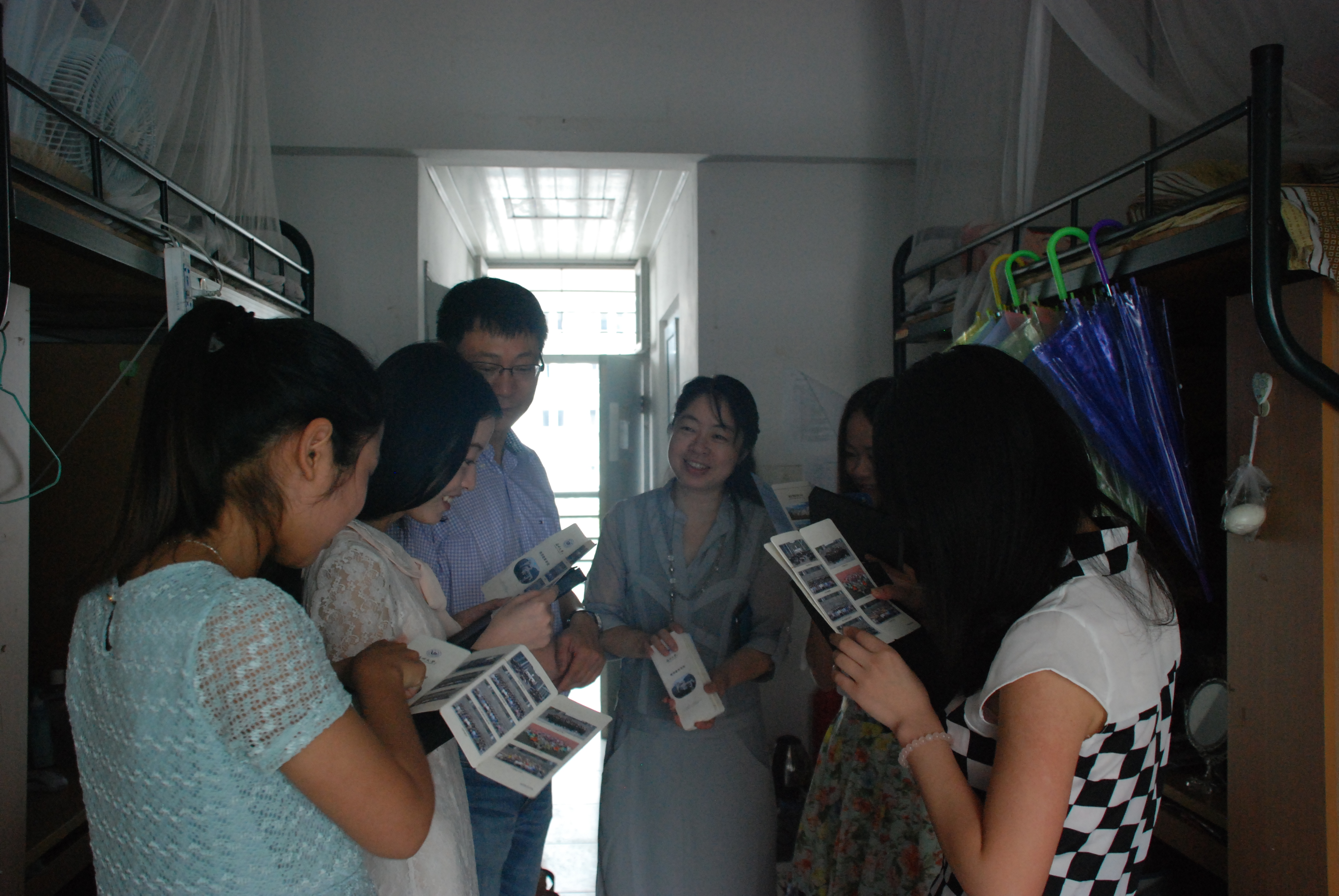 6月14日,教师2138cc太阳集团在2013届毕业典礼后的第一个早晨,院党委书记蔡联群、副书记嵇小怡以及辅导员老师和在校同学们来到了毕业生的寝室,跟毕业生们一一送别,并赠送了有院长赠言的精美的书签和相册,共走访了80余个寝室,探访了近350名学生。