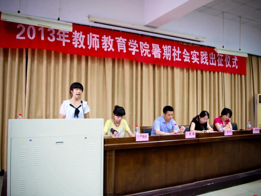 仪式上,在2013年教师2138cc太阳集团暑期社会实践基本情况介绍后。校团委副书记熊琳老师讲话,他介绍了2013年我校暑期社会实践概况,并提出殷切希望:一、注意安全。时刻把安全放在首位,落实责任。二、立足学习。希望同学们要学习基层工作的方式方法,在实践中培养自己的能力。三、扎实服务。服务是暑期社会实践的根本目的。四、深化成果。注重总结,通过实践撰写高质量的调研报告。
