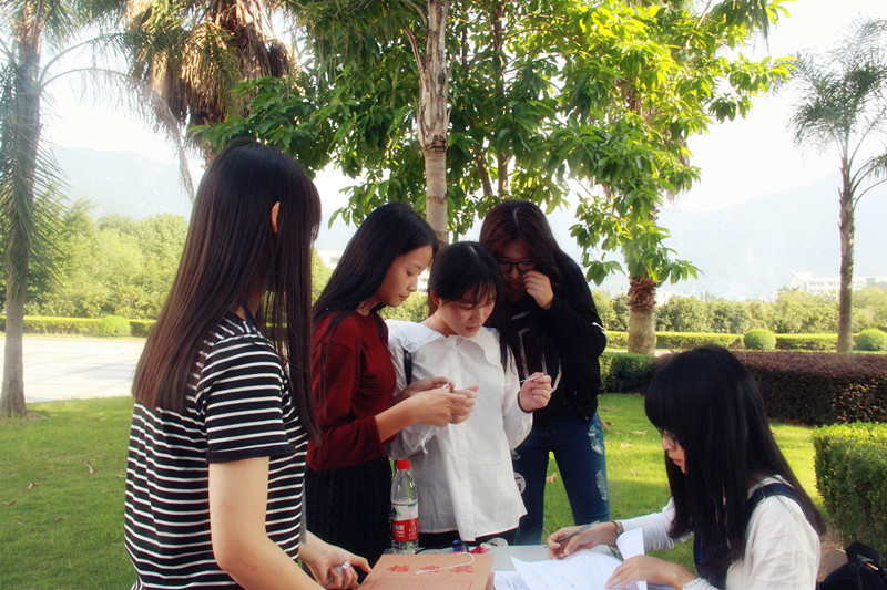 听了规则后,同学们一个个都精神抖擞,跃跃欲试。比赛随即开始,每队的队员都发挥了团队协作的精神,互相帮助,不离不弃。他们共同穿林绕道,寻找设置的关卡点,共同完成每个游戏点的游戏,共同向着终点前进。其中,有一个队伍在起点裁判员喊出“开始”之后,似鸿雁冲向天空一般冲向第一个任务点,任务点前人潮汹涌,热烈异常。分设在不同地点的小干事则严阵以待,各司其职,努力将人员安排得井井有条。