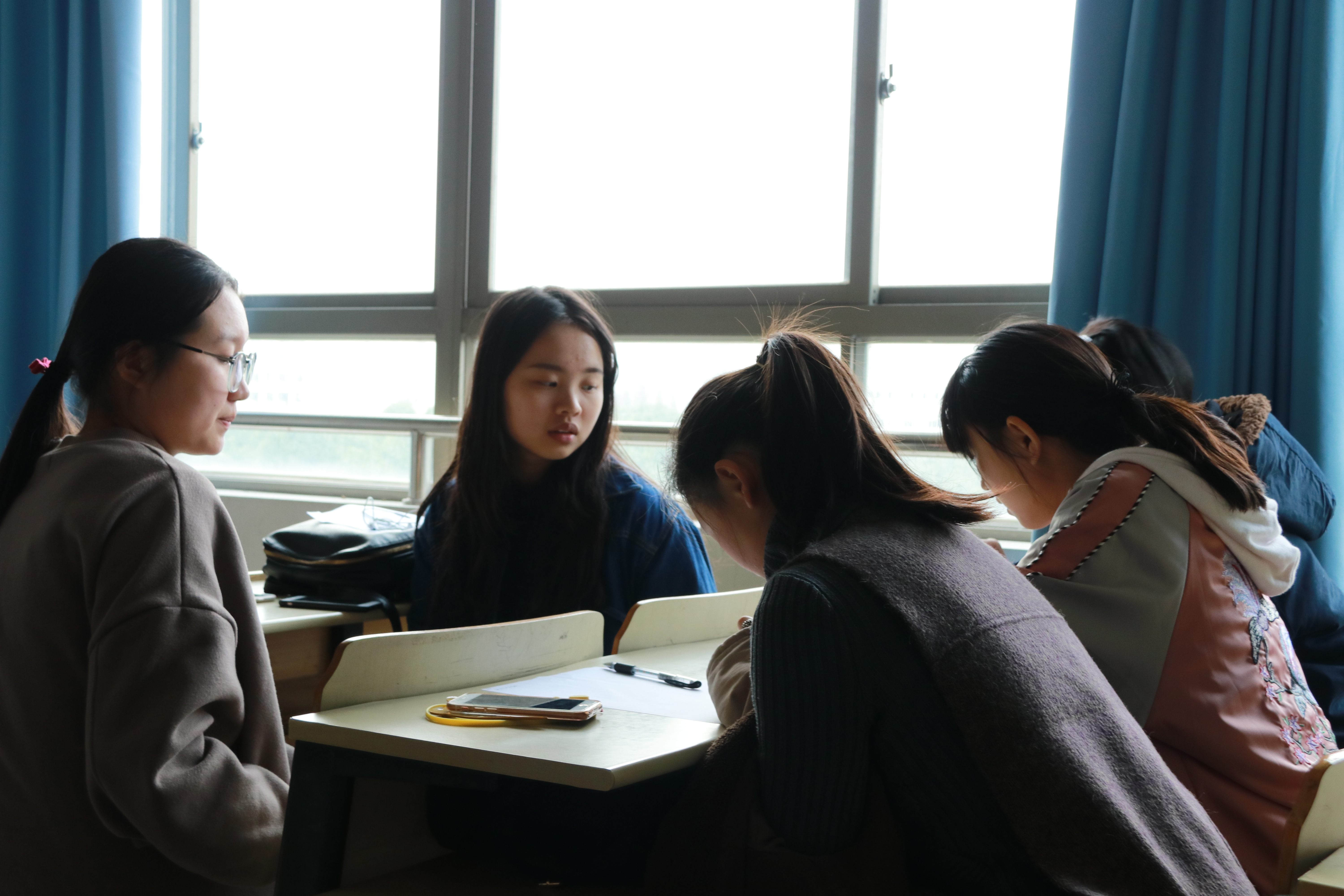 撰写完毕后,同学们陆陆续续回到最初的教室。各小组代表发言答辩,纷纷展示策划方案,一决高下。第一组的“线上打卡”“学风建设金点子大赛”的策划首先登场,针对的是学习计划,早自习的利用,手机袋的使用等问题。第二组提出的“不忘初心计划”则引起了强烈的探讨,从时间到选拔方式,再到组织形式,答辩异常激烈。第四组提出的关于学风建设的舞台剧,形式丰富,令人印象深刻。第五组的“挑战四六级”让全场眼前一亮,以微信等方式督促同学们学习,再加入“交保证金”的这一亮点,更使策划案增添了不少亮色。第十组的“镜头里的学风建设”,以视频的方式记录各班级学风,也同样新颖。各小组的精彩展出,赢得了其他同学的热烈的掌声。