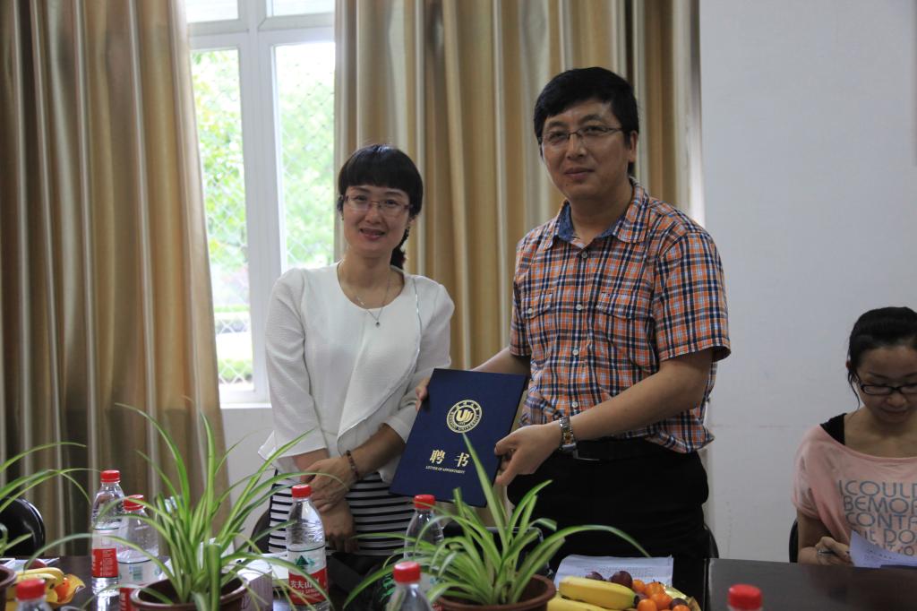 孙芙蓉副院长向黄岳明馆长颁发校外兼职专业负责人聘书