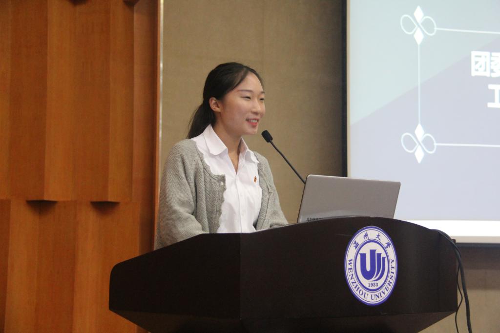 接下来团副张怡静讲话,她简要讲述了自己对团干的理解以及对后辈的期望。她认为学生会全体成员所做的一切都是为了管理服务全院学生的。正如杨立淮书记所强调的那样,身为团学干部,要思考以下三点:1.为什么参加团学组织?2.我能为团学组织做什么?3.团学能为我带来什么?我们并不是以利益来参加团学组织的,而是以服务大众的心态来参加。我们要对工作充满热情,以小我来成就大我。不忘初心才能方得始终。她在总结这个学期7个礼拜共完成200多件任务的情况下,不忘强调在完成任务的同时,要思考如何才能减少时间与精力。团副张怡静的一番语重心长的讲话,使在座的各位同学受益匪浅。