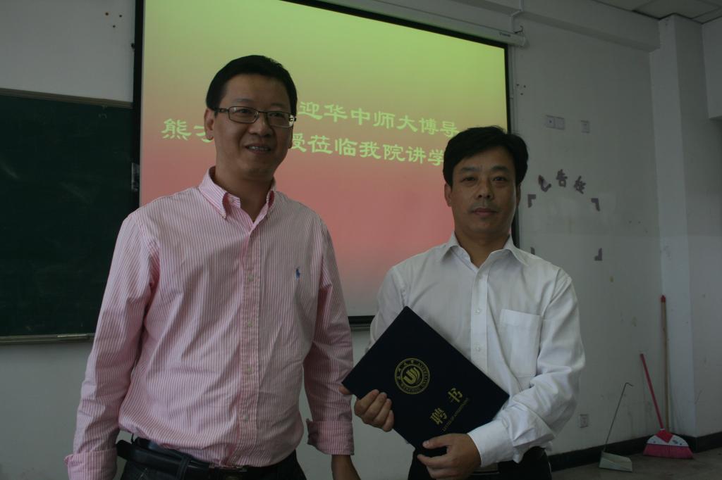 10月12日下午,熊教授在茶山北校区3-401教室为本科生作了题为《教育,在变革了吗?——论信息技术对教育发展具有革命性影响 》的专题讲座。讲座开始前,我院院长郑信军教授为熊教授颁发了特聘教授的聘书。教育技术系师生及研究生同学认真聆听了讲座。熊教授从解读《国家中长期教育改革与发展规划纲要(2010-2020)》为切入点,用简单明了的方式向同学们介绍了教育信息资源共享与发展变革、教师资源共享与培养变革、网络环境下的教学变革等方面的内容。最后熊教授以互动交流的方式激起了同学们的热情,把讲座推向了高潮。