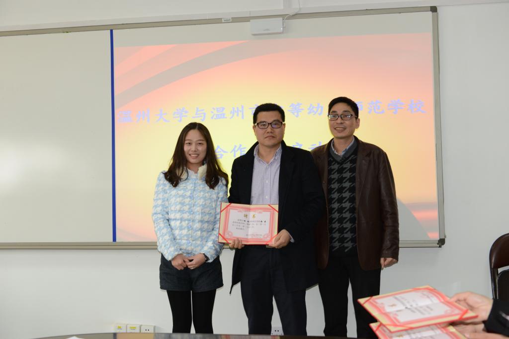 从2015年9月初形成合作意向,彭小明副院长就召开学前系领导与课程组组长等相关负责人会议,布置合作项目实施并提早启动了编写课标等相关工作。同年10月13日,温州市中等幼儿师范学校校长蒋高烈率领教学副校长、办公室主任等来学院与彭小明副院长、学前系领导、骨干教师开展教学调研、合作项目等交流,签订了全面合作项目协议书。合作项目主要包括:评估教学质量促进教学规范化发展;在原有的教学大纲与考纲基础上编写专业课程标准;开展拜师学艺、跟岗实践活动;开展旨在提升全面素养的教师培训;指导教育科学研究和教师专业发展等五个方面内容。