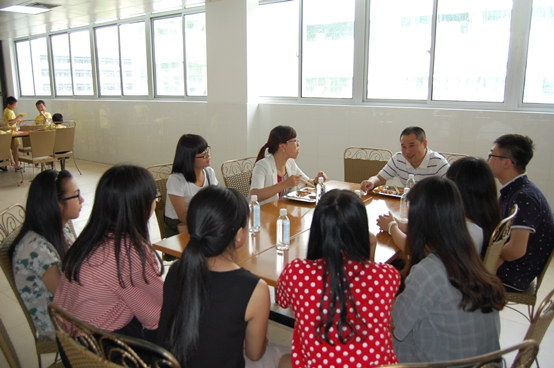 杨立淮书记谈吐幽默风趣,带动整个饭桌上的人都充盈着笑意。他的话语间,既有老师对学生的谆谆善诱,又有长辈对晚辈的殷殷期待。他充分肯定了知心姐姐这支队伍二十年来的历史,以及我们实践队做出的成绩。同时也不乏对实践队的支持和鼓励,并且以在场的黄冰融书记为例,希望我们无论在何岗位,都要努力,都要做好,在其位思其职,拥有一颗上进心,开拓进取,锐意创新。这个中午也因本次谈话而变得更有意义,推动着实践队往前迈进。