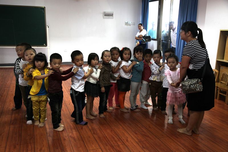 在实验中心老师的陪同下,他们参观了蒙台梭利实验室、奥尔夫实验室、感觉统合实验室。几位幼儿园老师纷纷表示收获很大,还要求我们多开展些这样的交流学习活动,小朋友们也玩得很开心,到处洋溢着欢声笑语,久久不愿离去。(摄影:胡铸鑫)
