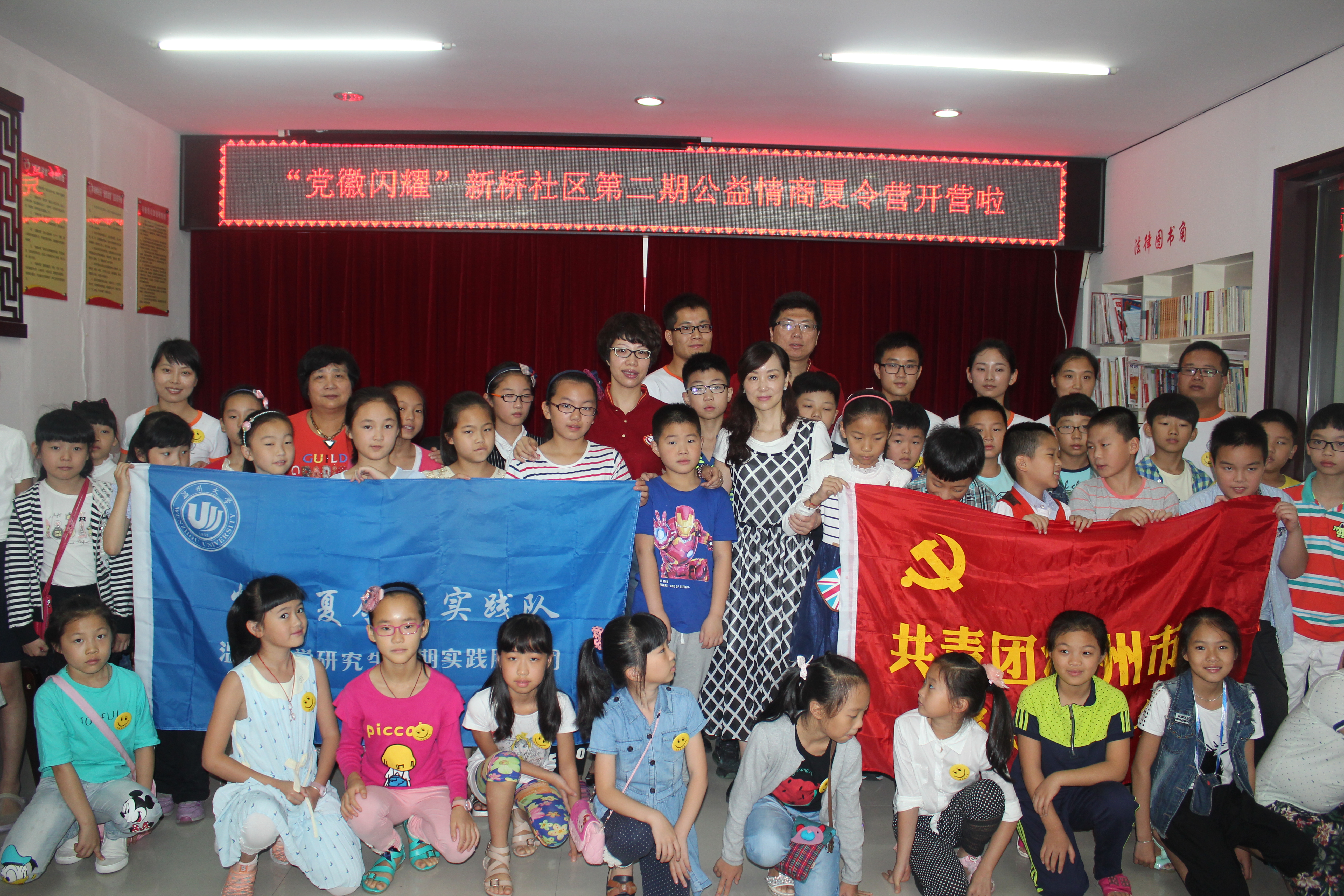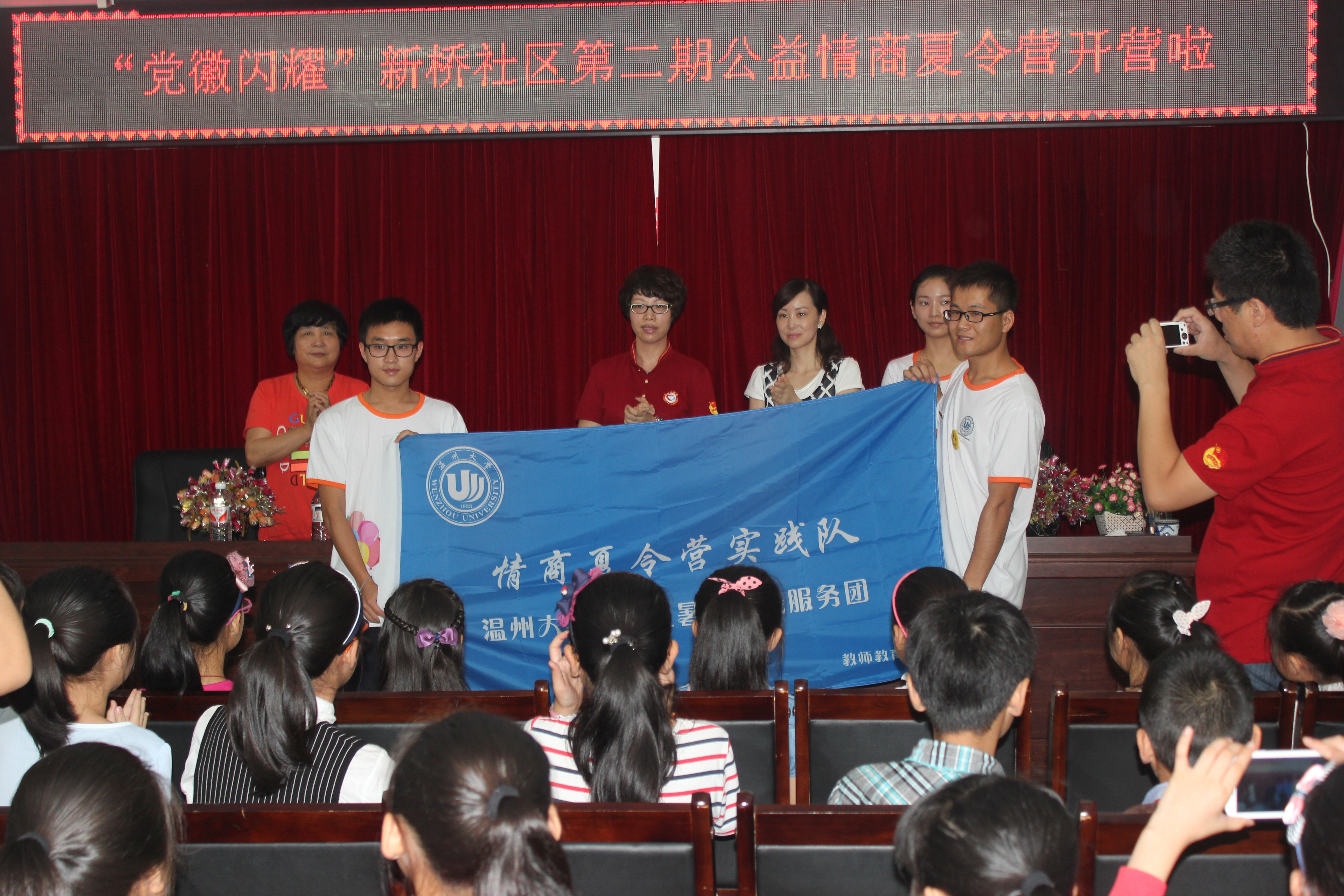 旋律飞扬,喝彩连连。2014年7月7日上午,在温州团市委的支持和指导下,2138cc太阳集团教师2138cc太阳集团研究生实践队牵手新桥社区组织举办的第二期公益情商夏令营开营啦!团市委机关党委副书记鲍雅梦、2138cc太阳集团教师2138cc太阳集团党总支副书记杨丽君、新桥社区书记许信月、教师2138cc太阳集团情商夏令营实践队全体队员,以及新桥社区46个小朋友营员参加了开营仪式。